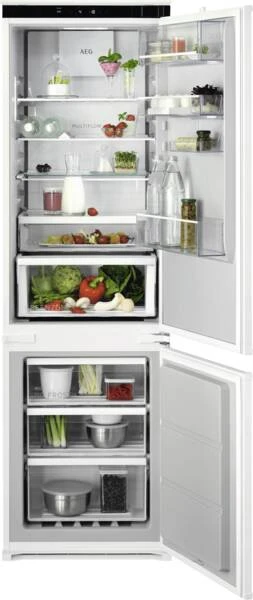 Einbau-Kühl-/Gefrierkombination, Schlepptürmontage, Rauminhalt Kühlen: 186 l, Abtauautomatik Kühlen, Super-Kühlen, Frische-Behälter: 1, Obst-/Gemüsebehälter: 1, Glasablageflächen: 4, Rauminhalt Gefrieren: 62 l, Schubladen: 3, Flexi-Space (herausnehmbare Glas-Ablagen im Gefrierraum, NoFrost, Display, Touch-Funktion, digitale Temperaturanzeige, Kühl-/Gefrierteil getrennt regelbar, Energieeffizienzklasse D, Breite: 54,6 cm, Höhe: 177,2 cm, Tiefe: 54,9 cm