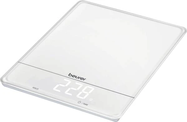 Küchenwaage, digitale Anzeige, Sensor-Touch-Bedienung, bis 15 kg Tragkraft, 1 g Teilung, Zuwiegefunktion, Glaswiegefläche