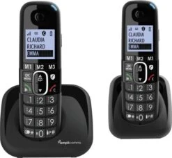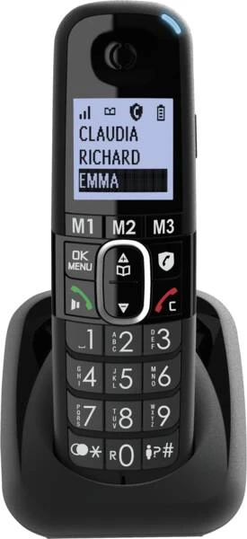 Festnetz-Telefon (für analogen Anschluß), schnurlos, DECT, Display alphanumerisch, beleuchtet, Telefonbuchfunktion, bis 100 Nummernspeicher, 3 Direktwahltasten, Anruferliste, Freisprecheinrichtung, Großwahltasten, Hörgeräte kompatibel, Anrufersperre, ca. 100 Stunden Standby-Zeit, zusätzliche Mobilteile: 1