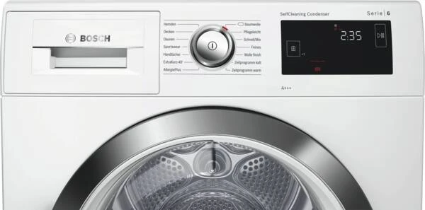 Wärmepumpentrockner, 8 kg Füllmenge, Sensitiv-Drying-Trommelsystem, Endzeitvorwahl, LED-Display, Programmablaufanzeige, Restzeitanzeige, Allergie Plus, Daunen, Knitterschutz, Schonen, Sportwäsche, Steppdecken, Finish Wolle, LED-Trommelinnenbeleuchtung, selbstreinigender Kondensator (automatische Flusenentfernung bei jedem Trockengang für konstant niedrigen Energieverbrauch), Kondenswasserableitung, Kondenswasser-Ablaufschlauch, Energieeffizienzklasse A+++, Breite: 59,7cm, Höhe: 84,2cm, Tiefe: 59,9cm