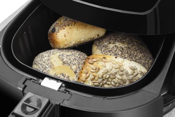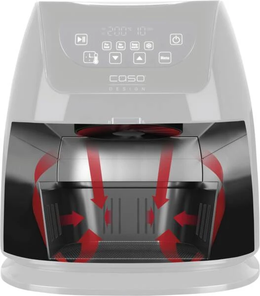 Heißluft-Fritteuse, rund, Display, Touch-Funktion, 3 l Fassungsvermögen, einstellbare Temperatur, minimal: 60 °C, maximal: 200 °C, Zusatzfunktionen Auftauen, Braten, Grillen, Rösten, Warmhalten, Timer, 1.400 Watt