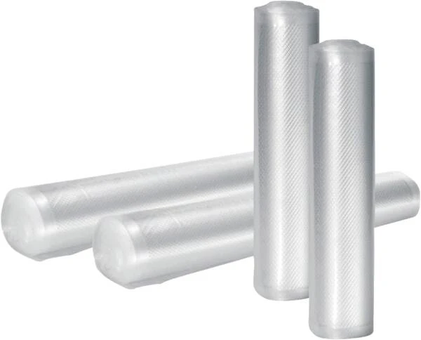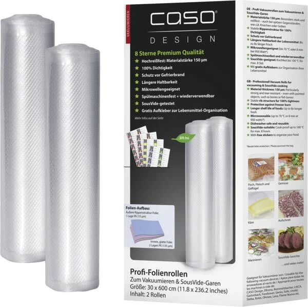 Gefrier- und Verpackungsfolienrolle für Folienschweißgeräte, Größe: 30×600 cm, kochfest, mikrowellengeeignet, stabile Schweißnaht, Rippenstruktur für optimales Vakuum, 2 Stück
