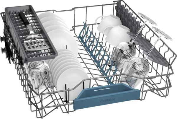 Einbau-Geschirrspüler, 5 Spülprogramme, Startzeitvorwahl, dosier Assistent, Reiniger-Automatik (automatisches Erkennen des verwendeten Reinigers), Display, Oberkorb höhenverstellbar, 3-stufig, aqua-Sensor (spart Wasser und Energie), Beladungserkennung / Beladungsempfehlung, Selbstreinigendes Sieb, Brushless DC-Motor (bürstenlos, effizient, langlebig und leise), Aquastop, Home Connect (Steuerung per Smartphone oder Tablets möglich), per App steuerbar, Energieeffizienzklasse D