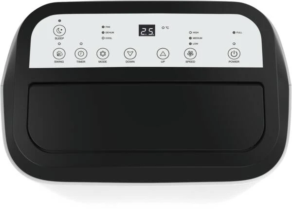 Mobiles Klimagerät, maximal 2.500 Watt Kühlleistung, Temperaturanzeige, geeignet für Räume bis 30 m², Energieeffizienzklasse A+
