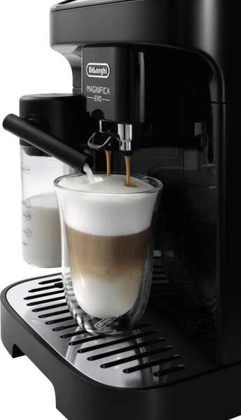 Kaffeevollautomat, 15 bar Pumpendruck, 1 und 2 Tassenbetrieb, einstellbare Brühtemperatur, einstellbare Kaffeestärke, Fach für zweite gemahlene Kaffeesorte, 1,8 l Wassertank, abnehmbar, integrierter Milchbehälter, Breite: 24 cm, Höhe: 36 cm, Tiefe: 44 cm