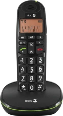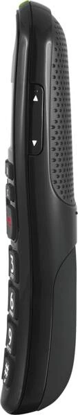 Festnetz-Telefon (für analogen Anschluß), schnurlos, DECT, GAP-kompatibel, Display alphanumerisch, beleuchtet, Telefonbuchfunktion, bis 20 Nummernspeicher, 3 Direktwahltasten, Anruferliste, Freisprecheinrichtung, Großwahltasten, Hörgeräte kompatibel, Tastatursperre