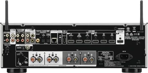 Stereo-Receiver, 2×145 Watt maximale Musikleistung, Hi-Res Audio, AirPlay 2, Dolby Vision, DAB-Empfang, DAB+, High Dynamic Range (HDR 10), 8K Ultra HD Passthrough, HTC Connect, Remote App kompatibel für iPhone, iPad, Android, AUX-Eingang, Bluetooth-Schnittstelle, Netzwerk-Anschluss (Ethernet), Plattenspieler-Eingang