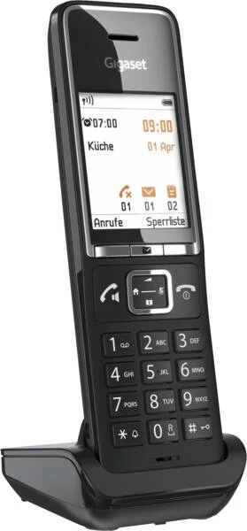 Telefon-Mobilteil, CAT-iq, DECT, GAP-kompatibel, Display farbig, beleuchtet, Breite x Höhe: 44×35 cm, Telefonbuchfunktion, bis 200 Nummernspeicher, ca. 320 Stunden Standby-Zeit