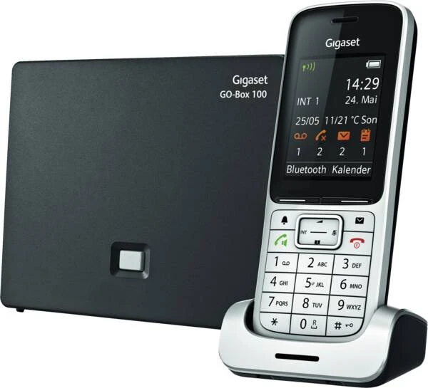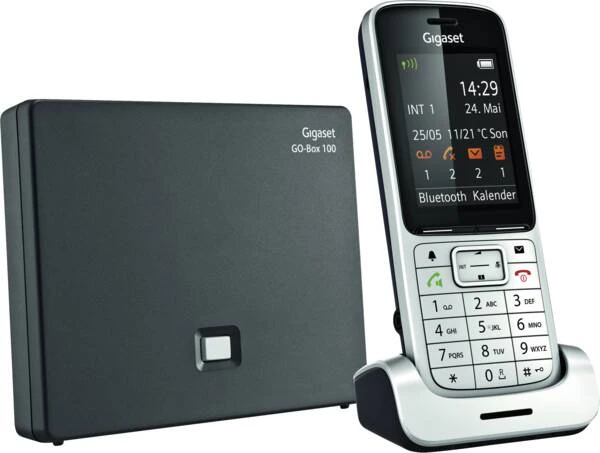 Festnetz-Telefon (für analogen Anschluß), Internet-Telefon, strahlungsarm, Voice over IP (VoIP), schnurlos, integrierter Anrufbeantworter, DECT, Display alphanumerisch, farbig, beleuchtet, Breite x Höhe: 3,8×5 cm, 6,1 cm Diagonale, Telefonbuchfunktion, bis 500 Nummernspeicher, CLIP-Funktion, Direktruf, Foto/Rufnummernzuordnung, Freisprecheinrichtung, Raumüberwachung (Babyfon-Funktion ), SMS-Funktion, Tastatursperre, Bluetooth, ca. 200 Stunden Standby-Zeit