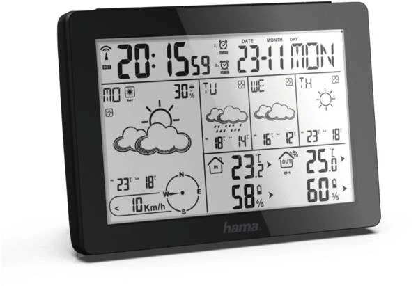 – digitale Anzeige von Temperatur, Uhrzeit, Profi-Wettervorhersage und