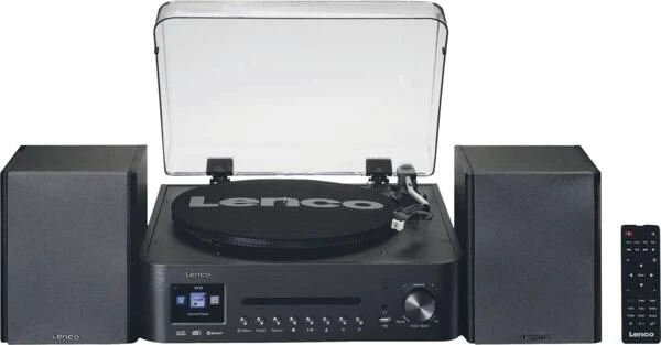 Stereo-Audiosystem, 2×20 Watt maximale Musikleistung, CD-Player, Plattenspieler, MP3-Konvertierung (Rippen), Radioteil, UKW, DAB-Empfang, DAB+, Internet-Radiowiedergabe, 7 cm Bildschirm, 2,8 Zoll, Breitband-Lautsprecherboxen, AUX-Eingang, Bluetooth-Schnittstelle, Kopfhörer-Anschluss, USB-Anschluss, Wireless LAN