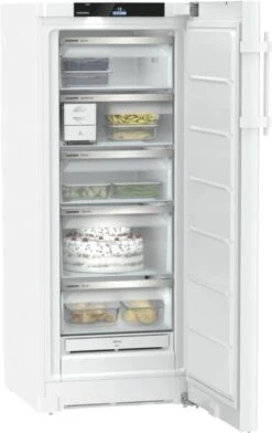 Stand-Gefrierschrank, 200 l Rauminhalt, Schubladen: 4, BigBox [XXL]: 1, Super-Gefrieren, NoFrost, Eisbereiter für Eiswürfel, Display, farbig, Touch-Funktion, digitale Temperaturanzeige, Sabbatmodus, VarioSpace (einzelne Gefrierschubfächer herausnehmbar, für extra hohen Stauraum), Betrieb bei einer Aussentemperatur von bis zu minus 15 Grad möglich, SmartDevice fähig (Steuerung über Internetverbindung mit optional erhältlicher SmartDeviceBox möglich), per App unterstützter Datentransfer, per App steuerbar, Energieeffizienzklasse D, Breite: 59,7 cm, Höhe: 145,5 cm, Tiefe: 67,5 cm