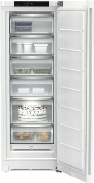 Stand-Gefrierschrank, 239 l Rauminhalt, Schubladen: 6, NoFrost, Display, Touch-Funktion, digitale Temperaturanzeige, VarioSpace (einzelne Gefrierschubfächer herausnehmbar, für extra hohen Stauraum), Betrieb bei einer Aussentemperatur von bis zu minus 15 Grad möglich, SmartDevice fähig (Steuerung über Internetverbindung mit optional erhältlicher SmartDeviceBox möglich), per App unterstützter Datentransfer, per App steuerbar, Energieeffizienzklasse E, Breite: 59,7 cm, Höhe: 165,5 cm, Tiefe: 67,5 cm