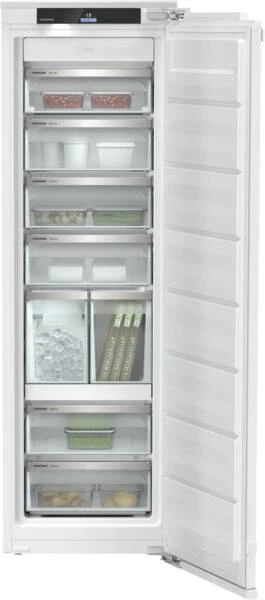 Einbau-Gefrierschrank, Festtürmontage, 213 l Rauminhalt, Schubladen: 8, Super-Gefrieren, digitale Temperaturanzeige, NoFrost, Eisbereiter für Eiswürfel, VarioSpace (einzelne Gefrierschubfächer herausnehmbar, für extra hohen Stauraum), SmartDevice integriert (Steuerung über Internetverbindung möglich), per App unterstützter Datentransfer, per App steuerbar, Energieeffizienzklasse E