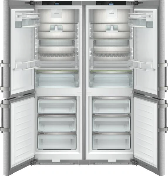 Multidoor/ Frenchdoor, 4-türig, Gesamt-Rauminhalt Kühlen und Gefrieren: 664 l, Rauminhalt Kühlen: 458 l, davon Kühl-/Gefrierzone, individuell regelbar: 206 l, Abtauautomatik Kühlen, Super-Kühlen, Umluftkühlung, Flaschenablage (liegend), Glasablageflächen: 8, Obst-/Gemüsebehälter: 2, VarioSafe (Kleinere Lebensmittel, Packungen, Tuben und Gläser sind in diesem Schubfach optimal aufbewahrt), LED-Säulenbeleuchtung, Rauminhalt Gefrieren: 206 l, Schubladen: 6, VarioSpace (einzelne Gefrierschubfächer herausnehmbar, für extra hohen Stauraum), NoFrost, Super-Gefrieren, LED-Beleuchtung, Display, farbig, Touch-Funktion, digitale Temperaturanzeige, Kühl-/Gefrierteil getrennt regelbar, Sabbatmodus, SmartDevice fähig (Steuerung über Internetverbindung mit optional erhältlicher SmartDeviceBox möglich), per App unterstützter Datentransfer, per App steuerbar, Energieeffizienzklasse D, Breite: 119,4 cm, Höhe: 185,5 cm, Tiefe: 67,5 cm
