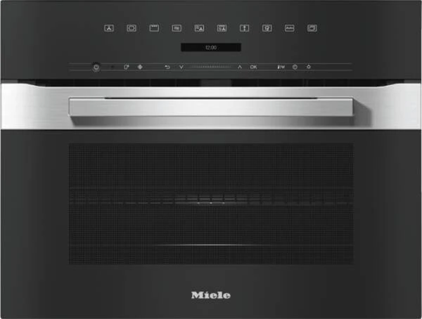 Elektro-Backofen, 43 l Garraum, 3 Backebenen, Temperaturregelung: 30-225 Grad, über 25 Programme, Schnellaufheizung, Backofentür mit sanftem Schließmechanismus, SoftOpen Tür, CleanGlass-Tür, Edelstahl-Schutzbeschichtung (Schutz vor Fingerabdrücken), Beheizungsarten Auftauen, Bratautomatik, Grill, Umluftgrill, Heißluft eco, Heißluft Plus, Mikrowelle, 1.000 Watt, 7 Leistungsstufen, Popcorn-Funktion, Warmhalten, Sensortasten-Bedienung, Display, Klartextanzeige im Display, Wahl der Displaysprache möglich, Temperaturanzeige, Vorschlagstemperaturanzeige, Elektronik-Uhr, Kurzzeitwecker, Start-/Stopp-Programmierung, LED-Beleuchtung, Miele@home (vorbereitet für die Heimvernetzung), per App unterstützter Datentransfer, per App steuerbar, kompatibel mit Amazon Alexa, Breite: 59,5 cm, Höhe: 45,6 cm, Tiefe: 56,3 cm