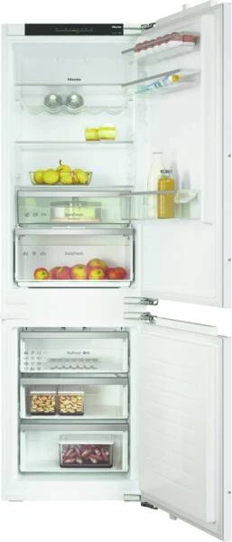 Einbau-Kühl-/Gefrierkombination, Festtürmontage, Rauminhalt Kühlen: 184 l, Super-Kühlen, Flaschenablage (liegend), Frische-Behälter: 2, Obst-/Gemüsebehälter: 3, Rauminhalt Gefrieren: 76 l, Schubladen: 3, NoFrost, LED-Temperaturanzeige, Energieeffizienzklasse E, Breite: 55,8 cm, Höhe: 177,2 cm, Tiefe: 54,5 cm