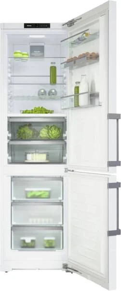 Kühl-/Gefrierkombination, Rauminhalt Kühlen: 259 l, davon Frische-Zone: 99 l, PerfectFresh, Super-Kühlen, Umluftkühlung, Flaschenablage (liegend), Frische-Behälter: 2, Glasablageflächen: 3, LED-Beleuchtung, Rauminhalt Gefrieren: 103 l, Schubladen: 3, VarioRoom (Schubfächer können getauscht bzw. entnommen werden, sodass Ihnen beim Verstauen des Gefriergutes größtmögliche Flexibilit ät geboten wird), NoFrost, Display, digitale Temperaturanzeige, Kühl-/Gefrierteil getrennt regelbar, Sabbatmodus, Miele@home (vorbereitet für die Heimvernetzung), per App unterstützter Datentransfer, per App steuerbar, kompatibel mit Amazon Alexa, Energieeffizienzklasse D, Breite: 60 cm, Höhe: 201 cm, Tiefe: 67,5 cm