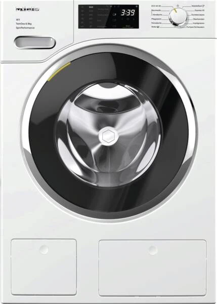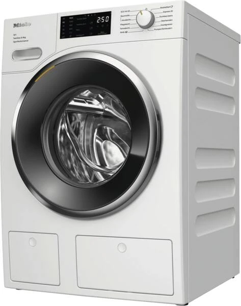 Waschmaschine, 5° geneigte Blende, 8 kg Füllmenge, Schleuderdrehzahl U/min: maximal 1.600, Schontrommel, Startzeitvorwahl, AddLoad (Nachlegefunktion), Display, Restzeitanzeige, AutoClean-Einspülkasten (selbstreinigende Waschmittelschublade), CapDosing (Einfache Dosierung von Spezialwaschmittel, Weichspüler und Additiv mit Portionskapseln), TwinDos (automatische Dosierung mit 2-Phasen-System), Programme und Optionen Vorbügeln, Eco, Imprägnieren, Niedrigtemperaturwaschen, Wolle/Handwäsche, Mengenautomatik, Waterproof-System, Miele@home (vorbereitet für die Heimvernetzung), PIN-Code Verriegelung, per App unterstützter Datentransfer, per App steuerbar, kompatibel mit Amazon Alexa, Energieeffizienzklasse A, Breite: 59,6 cm, Höhe: 85 cm, Tiefe: 64,3 cm