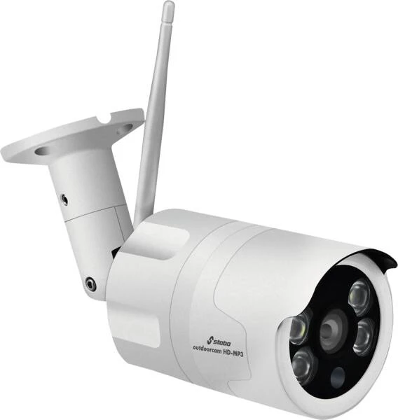 Überwachungskamera, outdoor, Funkübertragung, bis ca. 150 Meter Reichweite, Auflösung: 2.304×1.296 Pixel, HD Video, Bewegungsmelder, Gegensprechfunktion, Nachtsichtmodus, IP66 (staubdicht und Schutz gegen starkes Strahlwasser), Lautsprecher integriert, integriertes Mikrofon
