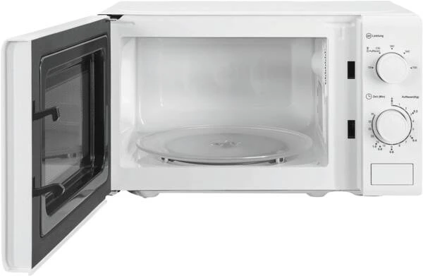 Solo-Mikrowelle, 20 l Garraum, Auftauprogramm, 700 Watt Mikrowellen-Leistung, 5 Leistungsstufen, mechanische Steuerung, Timer, Drehteller, 25,5 cm Durchmesser, Breite: 44 cm, Höhe: 25,8 cm, Tiefe: 34,6 cm