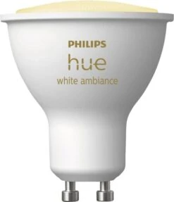 LED-Standardlampe, Energieeffizienzklasse G, 5 Watt, 230 Volt, 350 Lumen Lichtstrom, Sockel GU10, dimmbar, Lichtfarbe Warmweiss/Neutralweiss/Tageslicht (wechselbar), 15.000 Stunden mittlere Nennlebensdauer, Dim to warm [Farbtemperatur-Veränderung] von 2.200bis 6.500 K, Bluetooth, per App steuerbar, integrierte Sprachsteuerung, kompatibel mit Amazon Alexa, Apple HomeKit, Google Assistant, Microsoft Cortana, Android, iOS, Anschluß über die Hue Bridge vorausgesetzt, Höhe: 5,8 cm, 5 cm Durchmesser