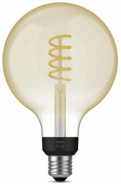 LED-Globelampe, Energieeffizienzklasse G, 7 Watt, 230 Volt, 550 Lumen Lichtstrom, Sockel E27, dimmbar, Lichtfarbe Warmweiss/Neutralweiss/Tageslicht (wechselbar), klar, 15.000 Stunden mittlere Nennlebensdauer, Dim to warm [Farbtemperatur-Veränderung] von 2.200bis 4.500 K, Bluetooth, per App steuerbar, integrierte Sprachsteuerung, kompatibel mit Amazon Alexa, Apple HomeKit, Google Assistant, Microsoft Cortana, Android, iOS, Anschluß über die Hue Bridge vorausgesetzt, Höhe: 19,2 cm, 12,5 cm Durchmesser