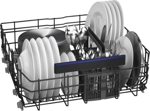 Einbau-Geschirrspüler, 6 Spülprogramme, Startzeitvorwahl, dosier Assistent, Reiniger-Automatik (automatisches Erkennen des verwendeten Reinigers), Display, Restzeitanzeige, Oberkorb höhenverstellbar, 3-stufig, aqua-Sensor (spart Wasser und Energie), Selbstreinigendes Filtersystem, IQdrive-Motor (bürstenlos, effizient, langlebig und leise), Aquastop, Home Connect (Steuerung per Smartphone oder Tablets möglich), per App unterstützter Datentransfer, per App steuerbar, integrierte Sprachsteuerung, kompatibel mit Amazon Alexa, Google Assistant, Energieeffizienzklasse D, Breite: 59,8 cm, Höhe: 81,5 cm, Tiefe: 57,3 cm