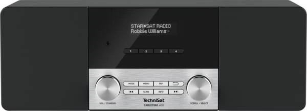 Design-Radio, Stereo, Empfang DVB-C, Uhr, AUX-Eingang, Kopfhörer-Anschluss, Netzbetrieb