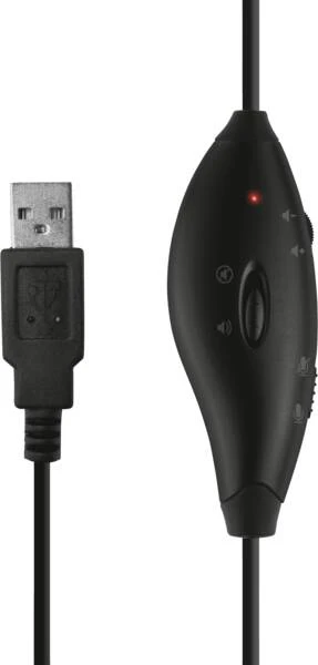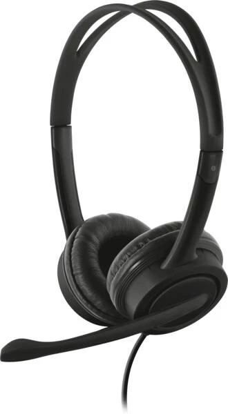 Kopfbügel-Headset, geeignet speziell für Internet-Telefonie (VoIP), PC-Office, Tablet-PCs, Stereo, kabelgebunden, Mikrofon-Stummschaltung, einseitige Kabelführung, Lautstärkeregler, USB-Anschluss