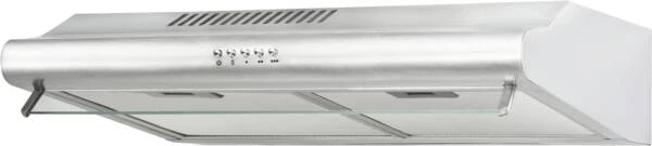 Unterbau-Dunstabzugshaube, Abluftbetrieb, auf Umluftbetrieb umrüstbar, 3 Leistungsstufen, maximale Gebläseleistung Abluft: 158 m³/h, Drucktasten-Bedienung, Halogenbeleuchtung, Anzahl der Lampen: 2, Metall-Fettfilter, Energieeffizienzklasse D, Breite: 60 cm, Höhe: 14 cm, Tiefe: 50 cm